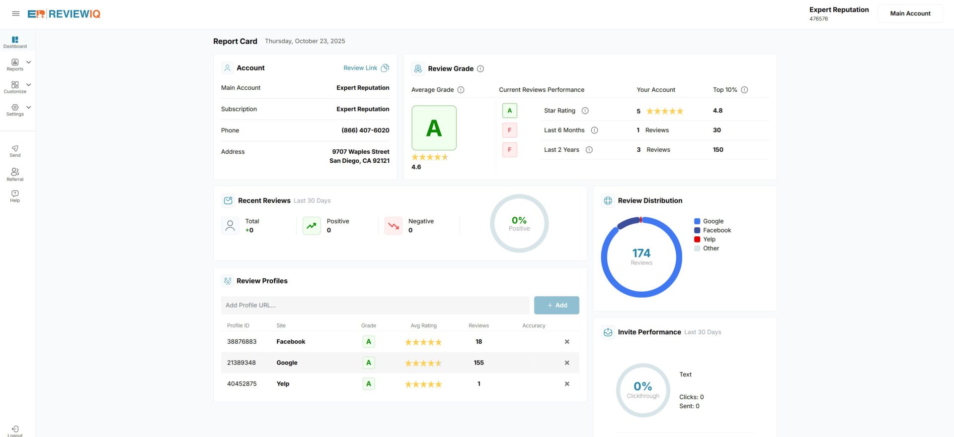 Expert Reputation has helped us boost all 27 profiles to an A profile, meaning all 27 profiles (23 physicians and 4 locations) have an average of 4.5 stars or above! This is absolutely incredible and a huge milestone for our practice. Expert Reputation has helped us receive over 3,000 reviews through email and text invites.